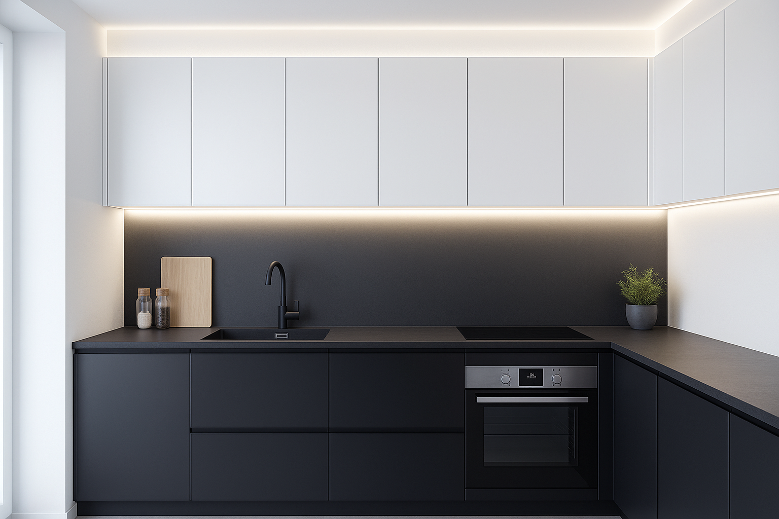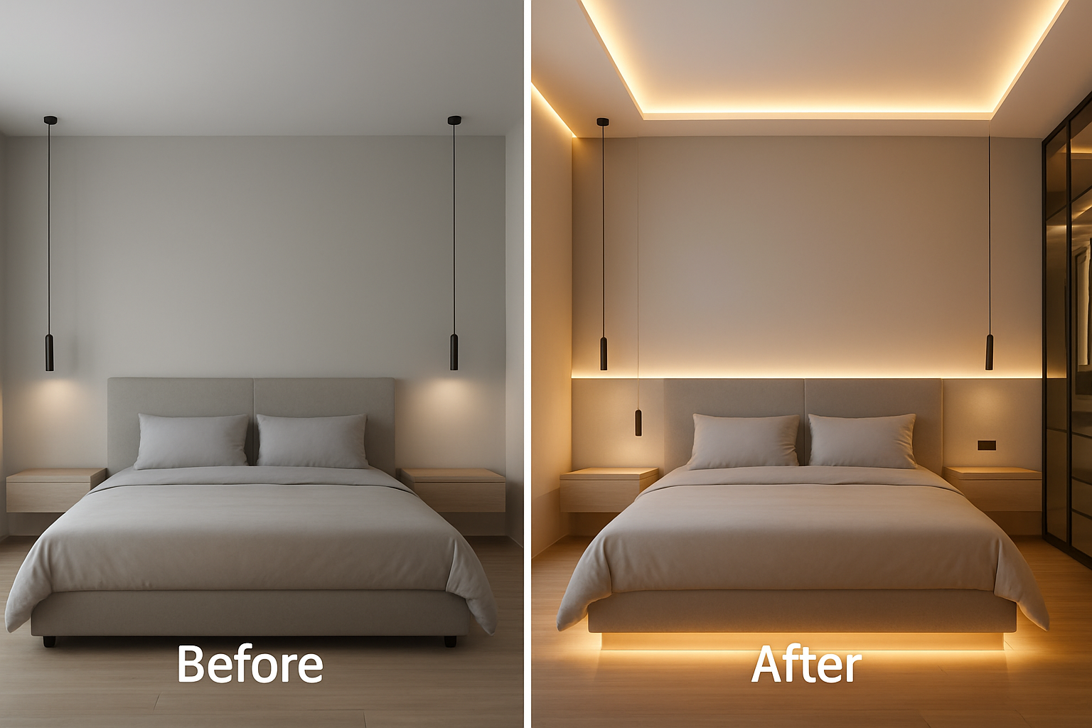 ใช้ Cool White หรือ Daylight เพื่อความชัดเจน สว่าง คุมโทนเรียบหรู มักใช้ไฟซ่อนฝ้าหรือแชนเดอเลอร์แบบเรียบ ๆ