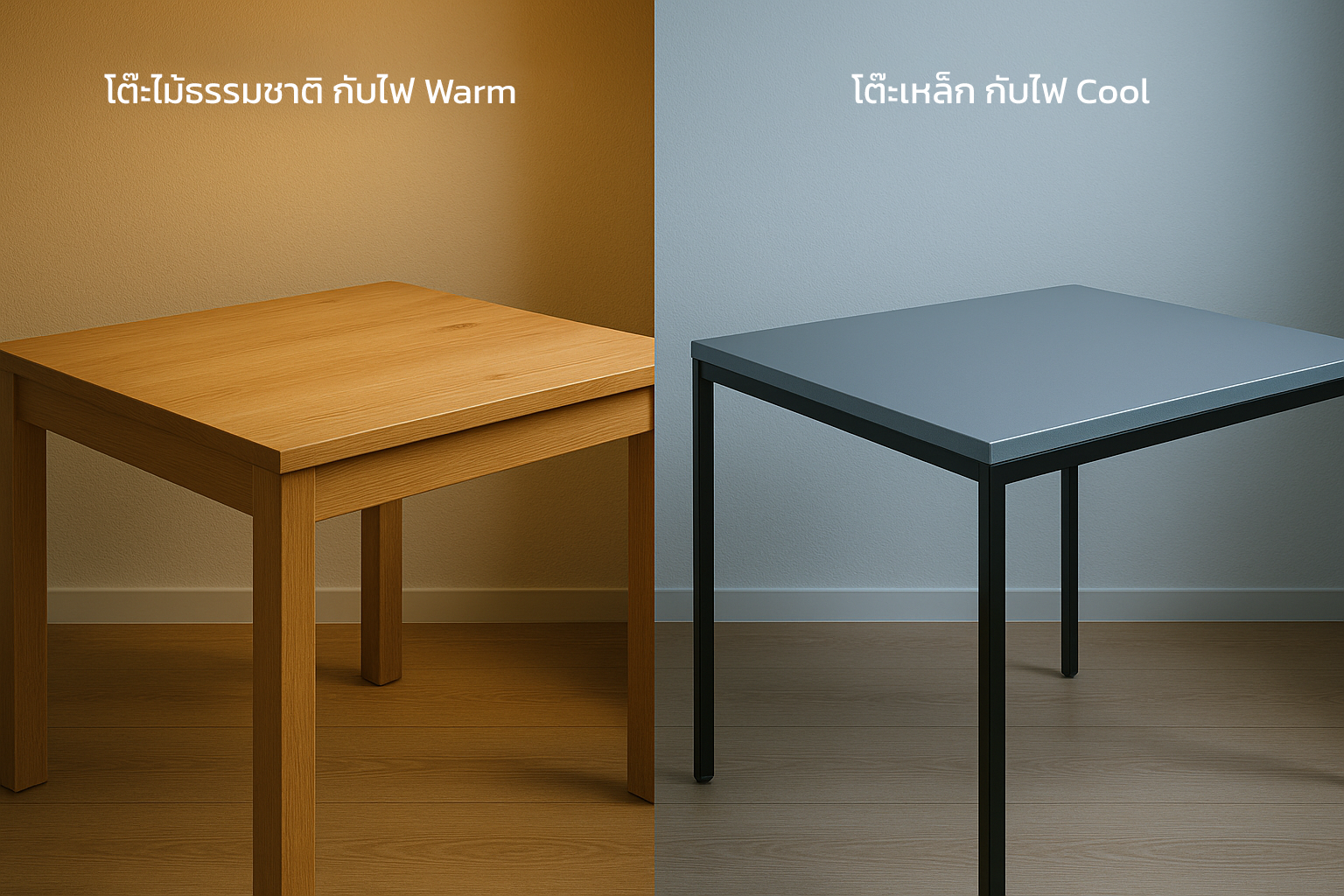 - เฟอร์นิเจอร์ไม้: เหมาะกับไฟ Warm White