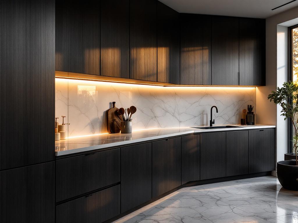 ติดตั้งรางไฟ LED ใต้ตู้แขวน เพื่อส่องสว่างเคาน์เตอร์ครัว ช่วยทั้งใช้งานจริงและเพิ่มความหรูหรา