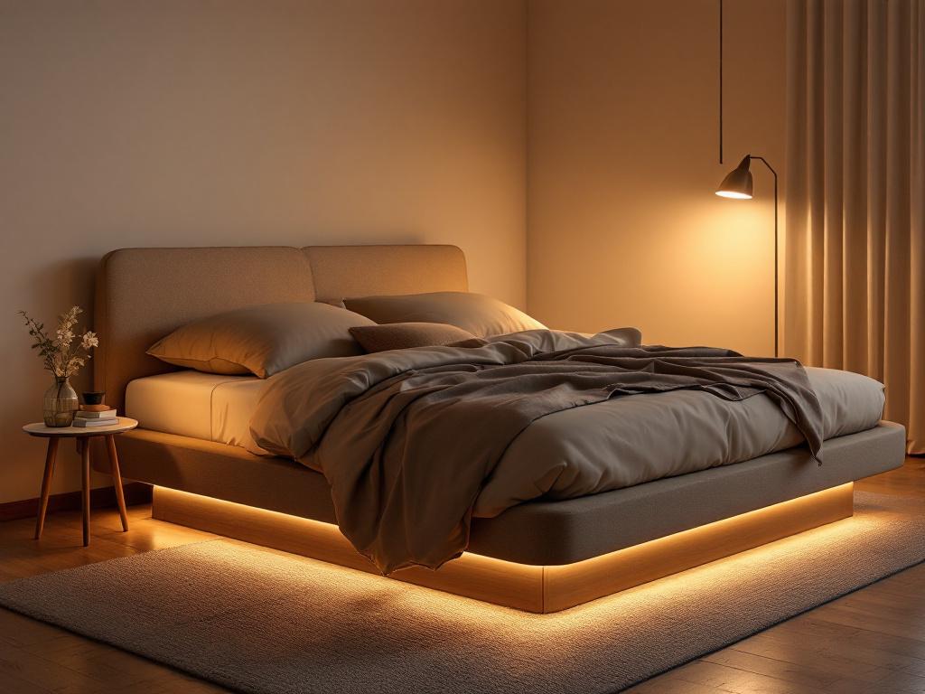 รางไฟ LED ซ่อนใต้ฐานเตียง ให้บรรยากาศผ่อนคลาย เปิดกลางคืนไม่รบกวนสายตา แต่ยังสวยงาม