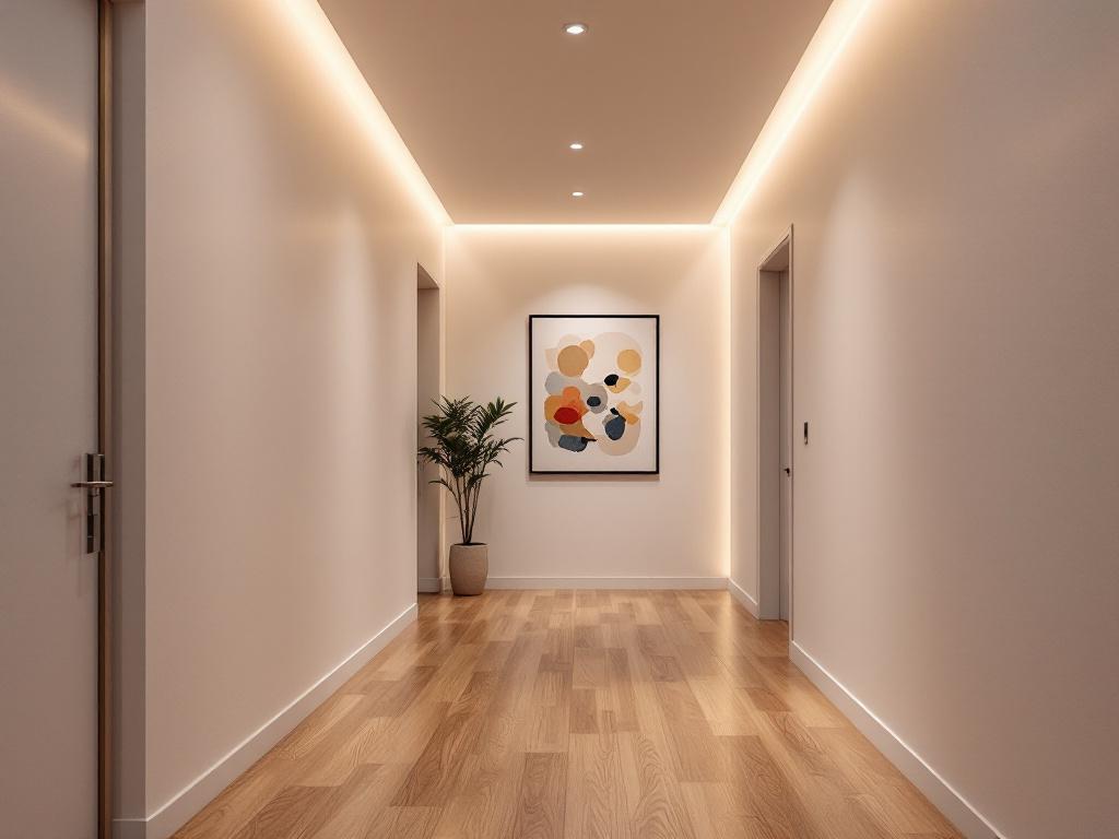 ใช้รางไฟ LED ฝังตามพื้นหรือขอบฝ้าเพดาน ทำให้ทางเดินดูปลอดภัย และมีบรรยากาศโมเดิร์น