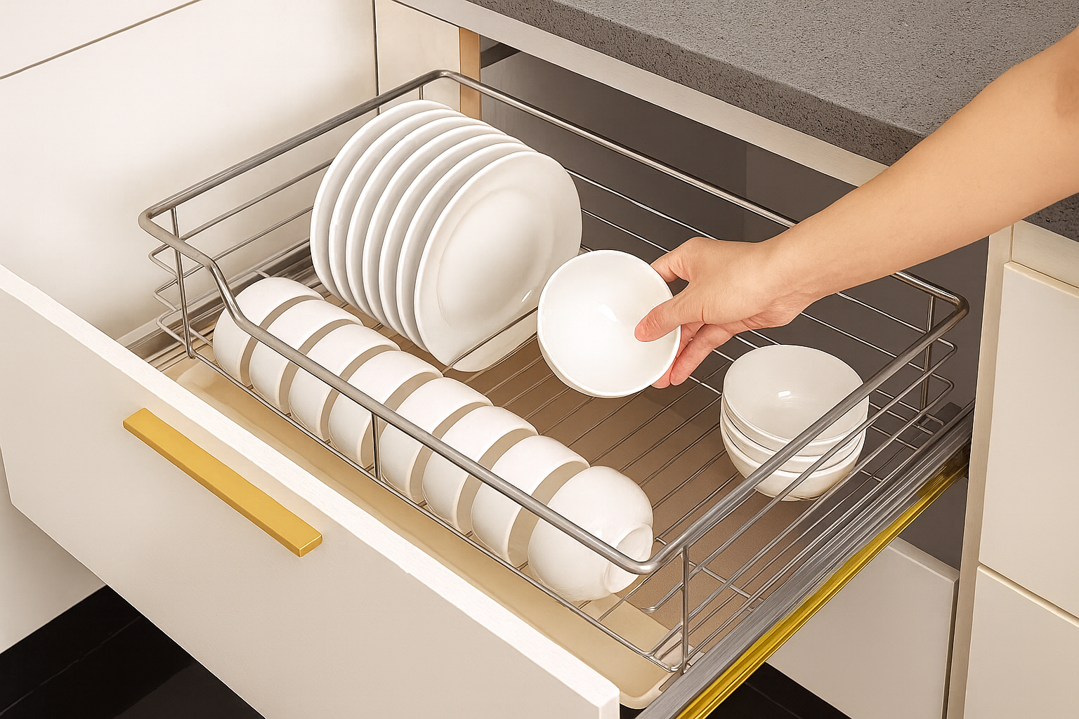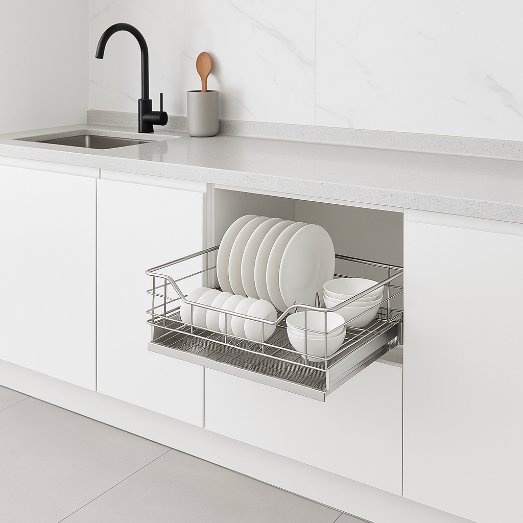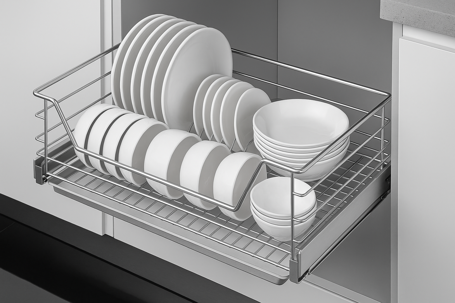 ตะกร้าคว่ำจานติดตู้ครัวเป็นไอเท็มที่ช่วยยกระดับครัวให้ใช้งานง่ายขึ้น ทั้งเรื่องความเป็นระเบียบ ความสะอาด
