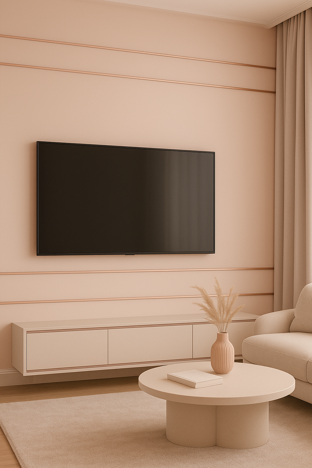 ความเรียบง่ายที่ซ่อนดีเทลหรู เส้นทองสะท้อนแสงบางเบา ช่วยยกระดับผนังให้ดูแพงแบบไม่ต้องใช้ของเยอะ