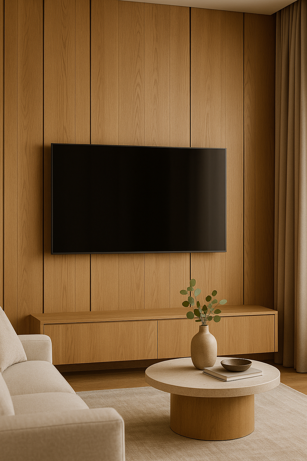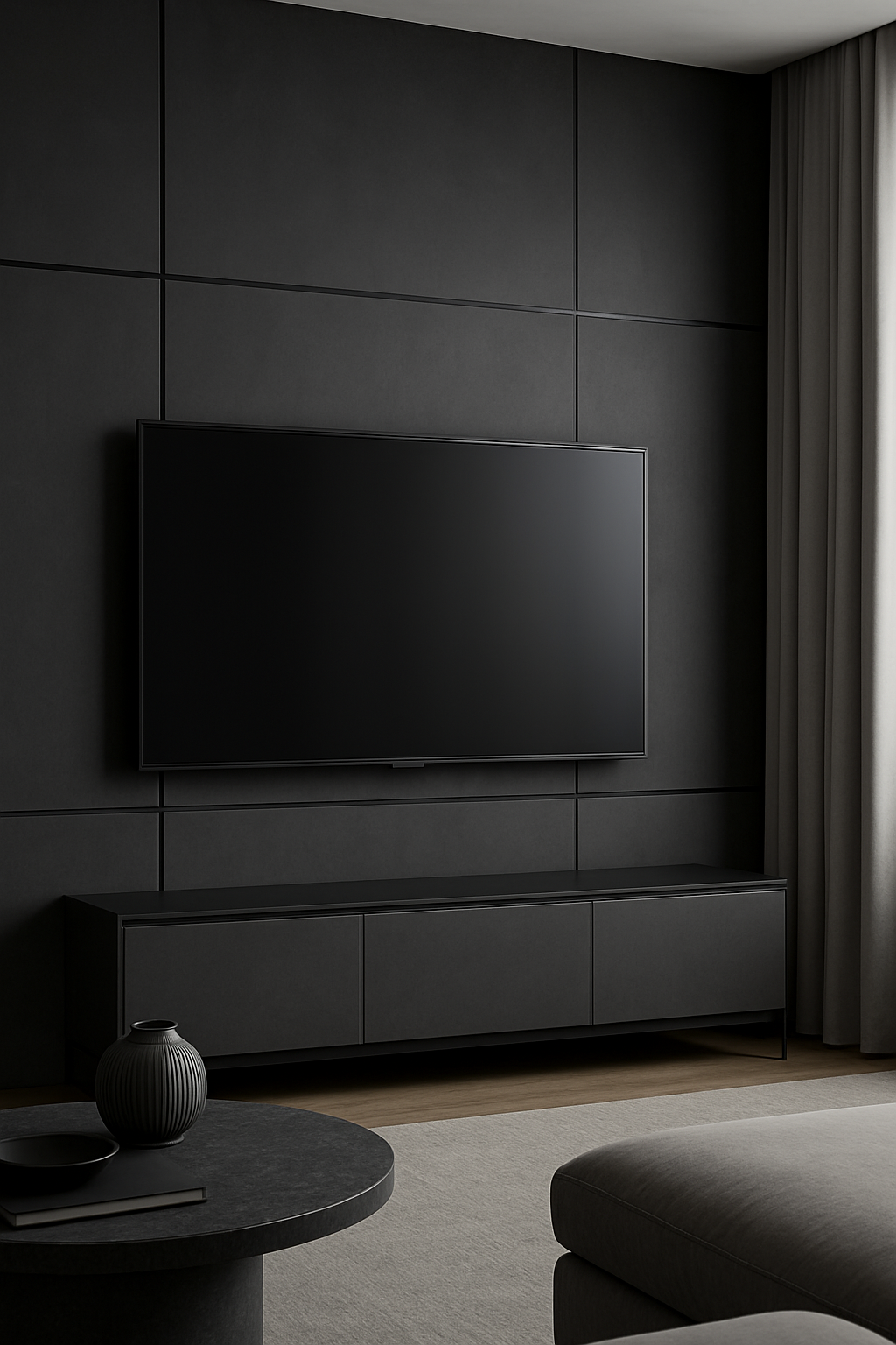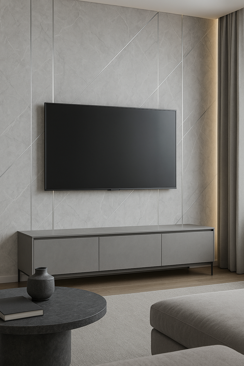 ความเรียบง่ายที่แฝงความโมเดิร์น เส้นเงินสะท้อนแสงนุ่มนวล เติมความสมบูรณ์ให้ผนังทีวีดูโดดเด่นขึ้น
