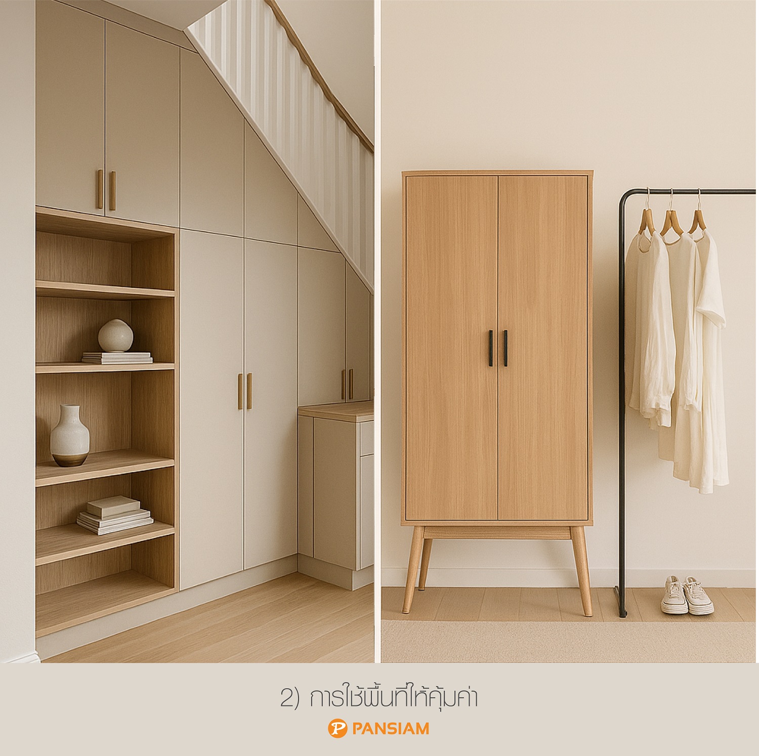 งานบิ้วอินจะออกแบบให้เข้ากับพื้นที่จริงทุกมุม ทุกเซนติเมตร ทำให้ภาพรวมของห้องดูเป็นระเบียบ