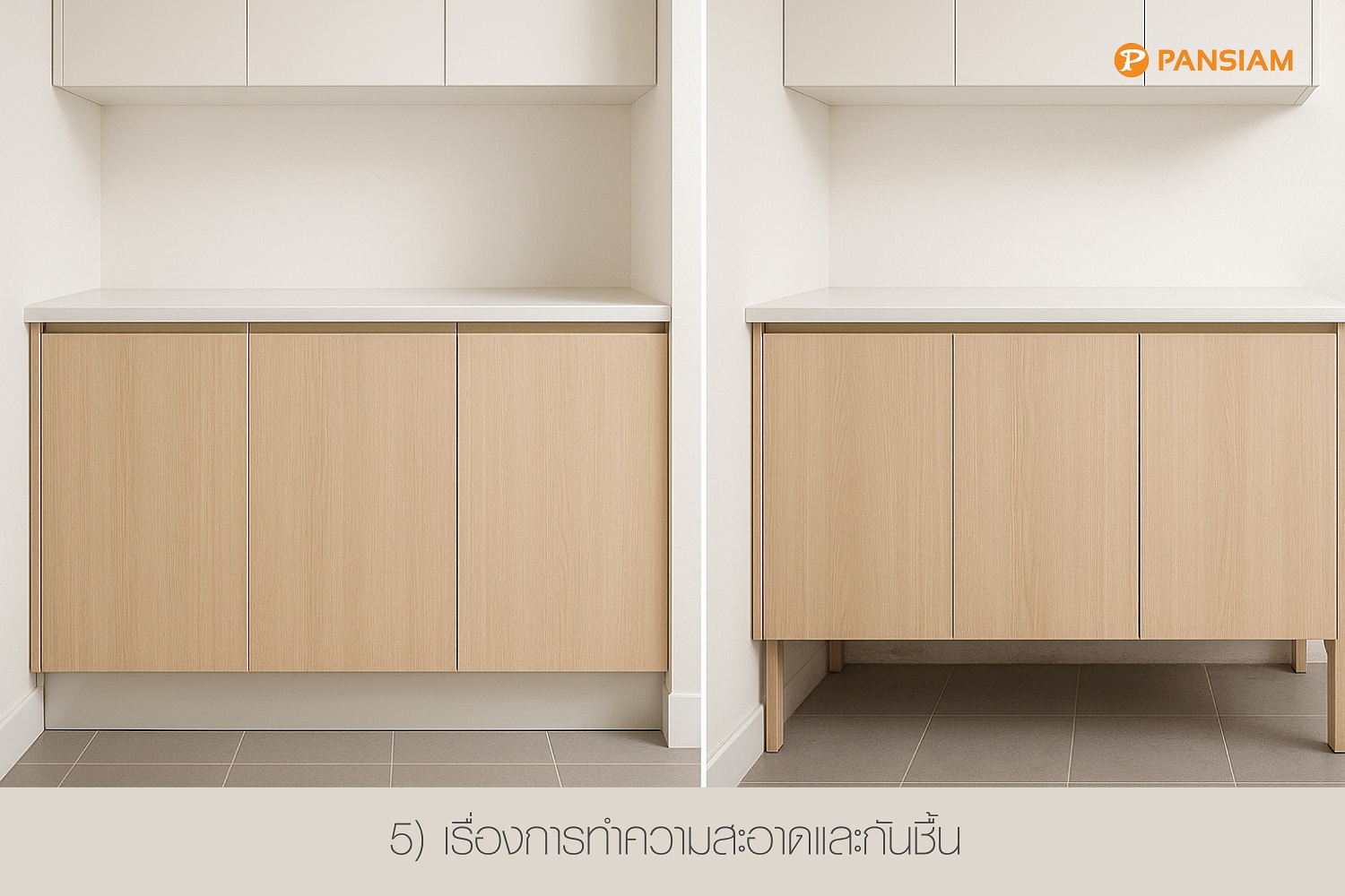 ปิดช่องว่างทุกด้าน ไม่เกิดฝุ่นสะสมหลังตู้หรือใต้ตู้ และสามารถเลือกใช้วัสดุกันชื้น กันปลวก